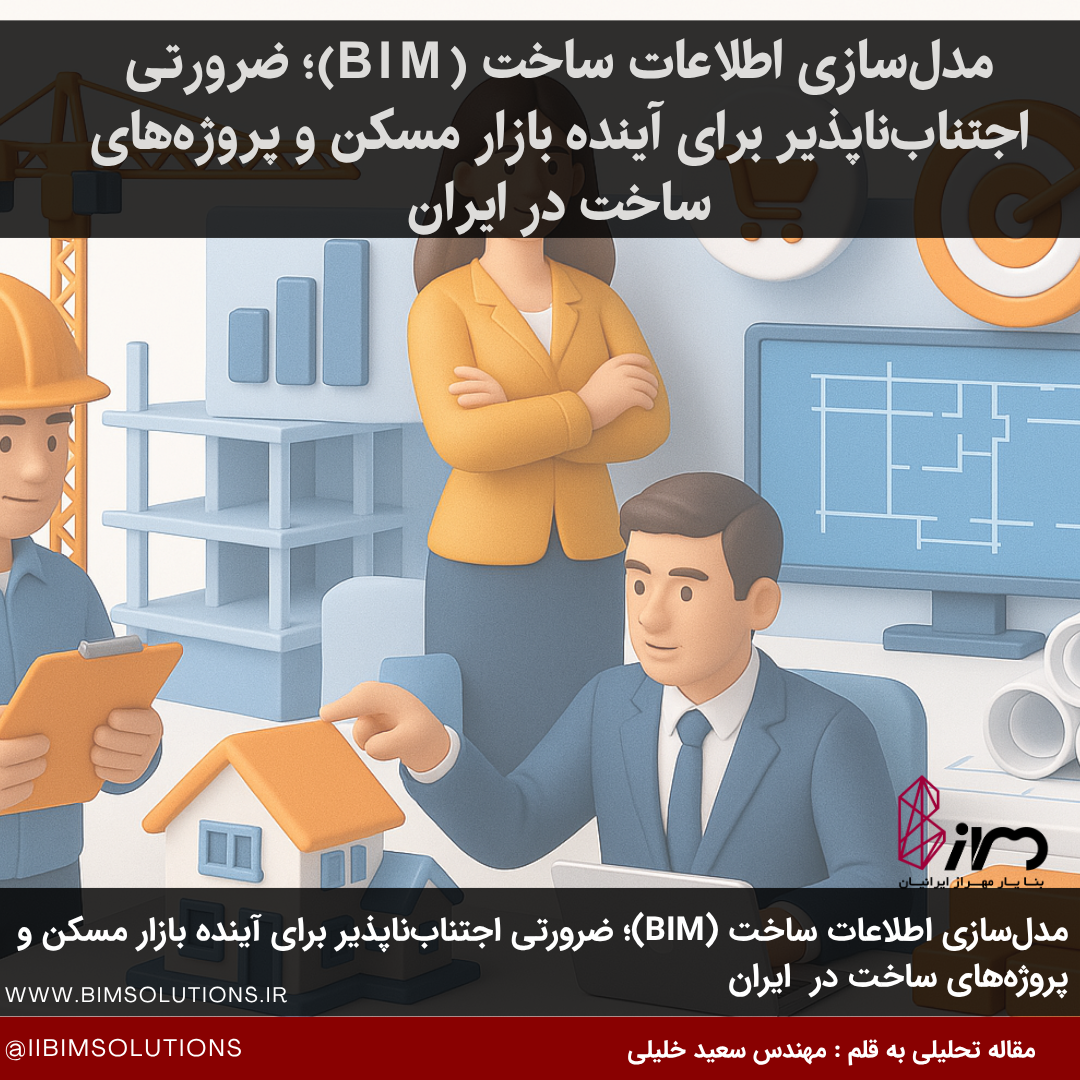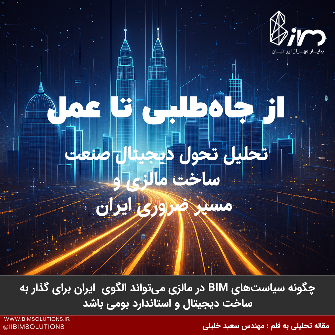 تحلیل تحول دیجیتال صنعت ساخت مالزی با محوریت BIM و مسیر بومی ایران به سوی استانداردهای جهانی مقالات و نوشتار های تحلیلی 18 مهر 1404 ادامه مطلب... 0 نظرات 48 بازدید مدلسازی اطلاعات ساخت (BIM)؛ ضرورتی اجتنابناپذیر برای آینده بازار مسکن و پروژههای تجاری ایران مقالات و نوشتار های تحلیلی 12 مهر 1404 ادامه مطلب... 0 نظرات 50 بازدید مدلسازی اطلاعات ساخت (BIM): بازگشت به جوهرهی دادهمحور یا سقوط به سطح یک شعار تبلیغاتی؟ مقالات و نوشتار های تحلیلی 28 شهریور 1404 ادامه مطلب... 0 نظرات 226 بازدید رمز موفقیت در پروژهها با BIM و کنترل پروژه: ماتریس اولویتبندی و Quick Wins مقالات و نوشتار های تحلیلی 08 شهریور 1404 ادامه مطلب... 0 نظرات 475 بازدید ویرایش پنجم مبحث نوزدهم مقررات ملی ساختمان: انقلاب دیجیتال در مدیریت انرژی با BIM، دوقلوی دیجیتال و رقومیسازی مقالات و نوشتار های تحلیلی 31 مرداد 1404 ادامه مطلب... 0 نظرات 643 بازدید شناسنامه فنی و ملکی ساختمان؛ سازوکار نوین ارتقای کیفیت و شفافیت در صنعت ساختوساز مقالات و نوشتار های تحلیلی 07 تیر 1404 ادامه مطلب... 0 نظرات 1581 بازدید متروپل، صدای شنیده نشده دیروز مقالات و نوشتار های تحلیلی 02 دی 1401 0 نظرات 7369 بازدید معرفی خدمات شرکت "بنا یار مهراز ایرانیان" در ماهنامه زیست بوم خلاق کشور مقالات و نوشتار های تحلیلی 04 آذر 1401 0 نظرات 7528 بازدید در مصاحبه با رسانه صدای مهندسی ایران (صما): BIM نیاز بی چون و چرای صنعت ساخت کشور مقالات و نوشتار های تحلیلی 23 ارديبهشت 1401 0 نظرات 8821 بازدید 12345بعدی خانه خدمات مدلسازی اطلاعات ساخت(BIM) پیاده سازی BIM در پروژه های در حال ساخت مدلسازی هوشمند با مفهوم BIM معماری (Architecture) سازه (Structure) برق و مکانیک (MEP) راه - باند - ریل - بندر تهیه مدلهای "چون ساخت" - لیزر اسکن"Laser Scan" پیدا کردن تداخلات (Clash detection) متره و برآورد (Quantity Take -ff) ساخت "فمیلی(Family)" چهار بعدی (4D) و پنج بعدی (5D) بعد ششم(6D) بعد هفتم (7D) پلاگین ها و نرم افزارهای سفارشی مدیریت پروژه نوین و فناورانه واقعیت مجازی(VR) و واقعیت افزوده(AR) شبیه سازی و بهینه سازی انرژی در پروژه ها شبیه سازی فرآیندهای عمرانی،صنعتی،معدنی مدیریت بنادر اسکن لیزری (3D Laser Scan) آموزش پیاده سازی موضوعات فناورانه در ارگانها/سازمانها/شرکتها پیاده سازی BIM و موضوعات فناورانه در ساختار سازمانی فرم درخواست بررسی آموزش آموزش گروهی آموزش خصوصی ویدئو گالری تحقیق و توسعه کتابخانه مراجع و مقالات اخبار مقالات و نوشتار های تحلیلی سمینارها، همایش ها، وورکشاپ ها و ... اسناد و آئین نامه های و دستورالعمل های ایران دستورالعمل پیاده سازی BIM-سازمان برنامه انتشارات فروش بسته های آموزشی فروشگاه کتاب پروژه ها پروژه های اداری, تجاری و آموزشی صنعتی (نفت - گاز - پتروشیمی - معدنی - فولاد و ... ) پروژه های مسکونی پروژه های درمانی پروژه های زیر ساختی (ریلی و مترو، راه و باند، فرودگاه، آب و فاضلاب و ...) پروژه های سنتی، بقا متبرکه، حرم های مطهر، مساجد پروژهای پیاده سازی BIM در ساختار سازمان ها، ارگان ها و شرکت ها پروژه های خارج از کشور نمونه تور مجازی - بنا یار مهراز ایرانیان تور واقعیت مجازی - نهضت ملی مسکن - فرنیا درباره ما درباره ما بیشتر بدانید نمایندگی ها تماس با مارزومه سعید خلیلی مسلم شیخ خوشکار محمد خراسانی نادر جمالی فرم ورود ثبت نام همکاری با ما فراخوان جذب نماینده فعال در استان های کشور مرا بخاطر داشته باش ورود ایجاد حساب کاربری بازیابی نام کاربری بازیابی رمز عبور Search